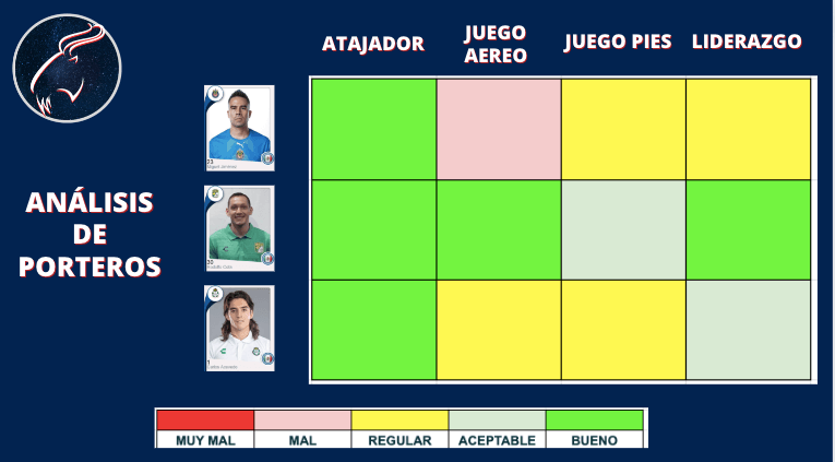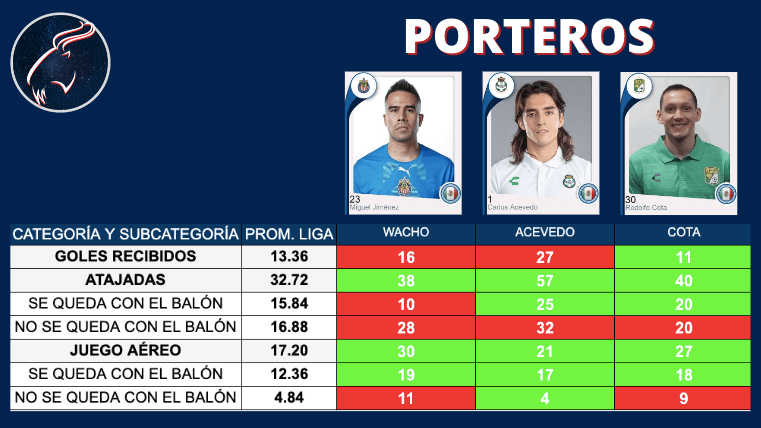 Revisando las estadísticas publicadas podemos concluir que Miguel Jiménez es un muy buen atajador, pero tiene una deficiencia marcada en el juego aéreo, esto da ventajas a los rivales, lo que se suma a tener una central con jugadores con potencial pero con clara falta de madurez.